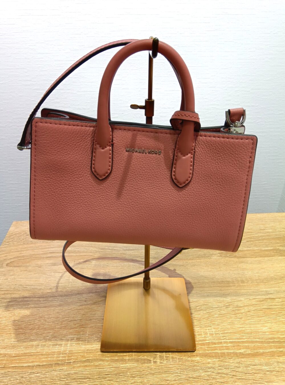 ふたつめは、アメリカのラグジュアリー・ライフスタイルブランド「MICHAEL KORS(マイケル・コース)」から、「SCARLETT クロスボディ エクストラスモール」(税込16,500円)です。柔らかなレザー、光沢のあるパーツ…。小ぶりながら存在感のある、クロスボディとショルダーの2WAYバッグとなっています。