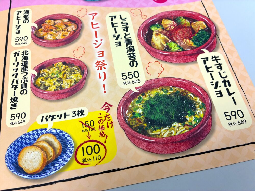 今は『アヒージョ祭り』を開催中なんですよ。中でも個人的な推しは「しらすと青海苔のアヒージョ」。程よい塩気が効いていて、ワインとの相性がもう抜群なんです…!具材の旨みがたっぷり溶け出したオイルに、バゲットをひたして食べる瞬間はまさに至福。小ぶりなサイズなので、お一人さまでの「ちょい飲み」にもぴったりですよ。