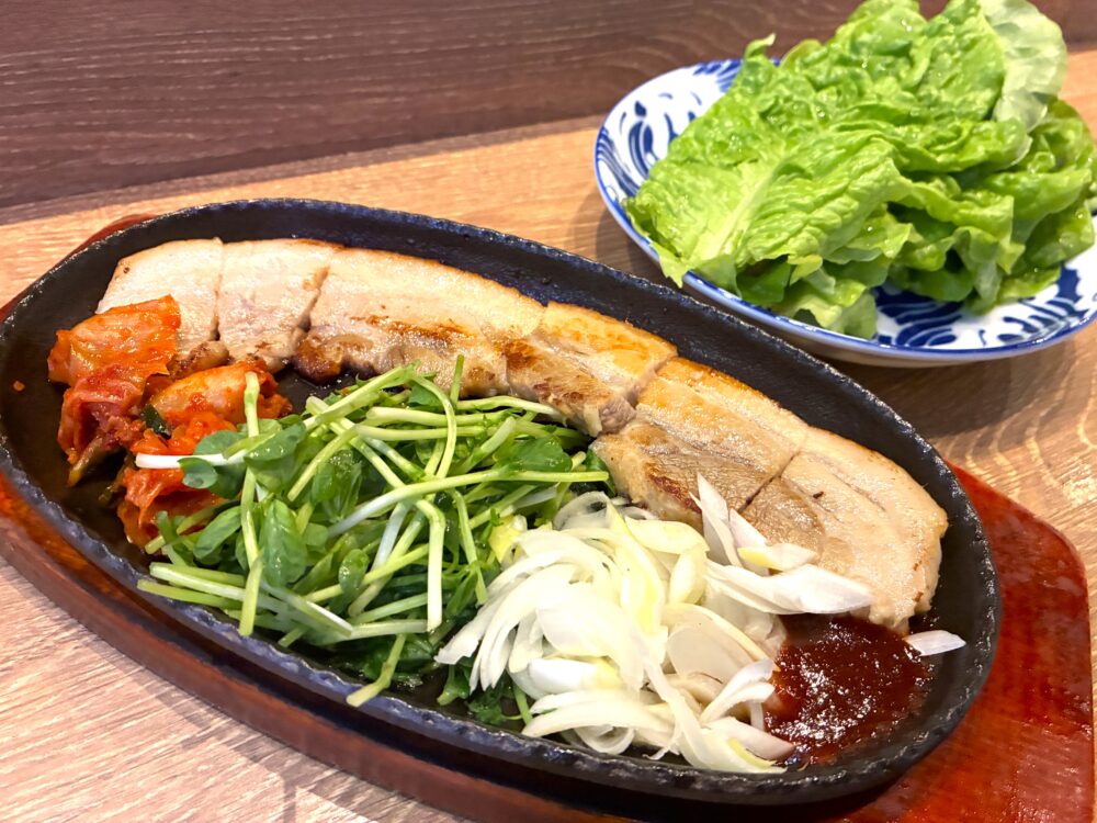 今回、私たちが一番力を入れたのが「サカバの鉄板サムギョプサル」です。これまでもガッツリとお肉を楽しめる鉄板メニューは好評だったのですが、今回は人気の韓国料理を取り入れてみました。鉄板に乗せてお届けするので、テーブルでもずっとアツアツ!香ばしく焼いたジューシーな豚バラ肉はボリューム満点で、お腹も心も大満足間違いなしの一皿ですよ。