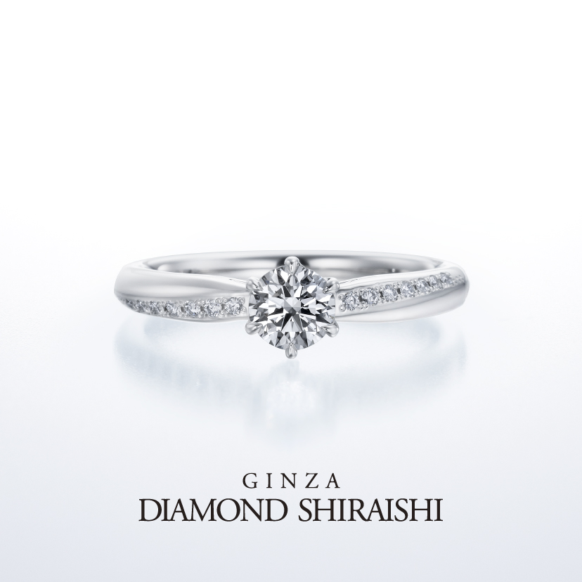 ふたりの出会いによって生まれた無限の輝きが永遠となり、未来へと果てしなく続いていく様子を表現しています。中心に向かって細くなるアームはセンターダイヤモンドを引き立て、ストレートでありながら緩やかなウェーブを描く有機的なメレダイヤモンドのラインは上品かつ自然な印象を与えます。